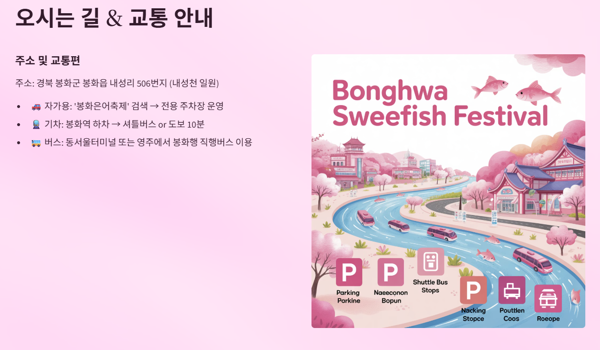 🚗 자가용: ‘봉화은어축제’ 검색 → 전용 주차장 운영