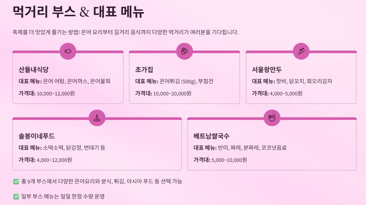 🍴 먹거리 부스 & 대표 메뉴 정보
